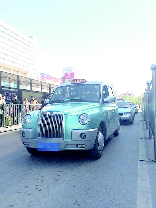4月16日上午,记者在济南火车站看到,一辆无障碍出租车跟普通出租车一起排队拉乘客。与普通出租车相比,英伦范儿的老爷车显得非常特别。在等待约10分钟后,记者发现有两名乘客登上了这辆无障碍出租车。