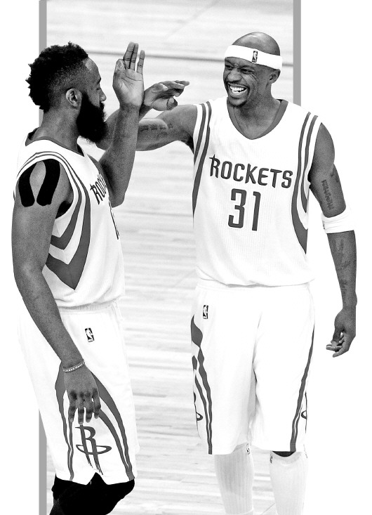 如今的“火牛”大战,哈登(左)已经成为绝对的主角。 新华社发