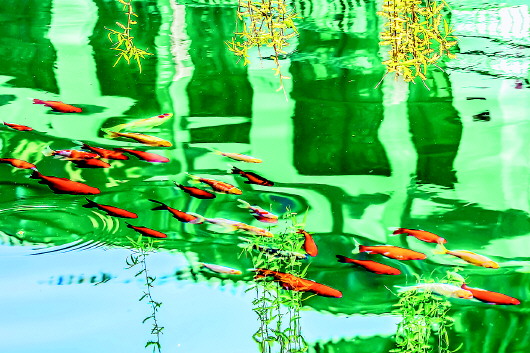春天来了,五龙潭公园花红柳绿,鱼儿在水中畅游,显露着春天的生机与活力。李增堂 摄影报道