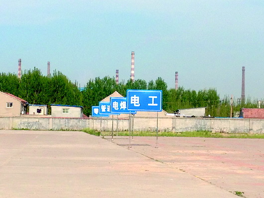 这个零工市场面积大约有两个标准操场那么大,从栏杆往里看去,能看见空旷的场地上树立着各种牌子。有瓦工、木工、电工、粉刷工等各类工种,还有一个洽谈区。可以看到,在零工市场里还有一个公厕。