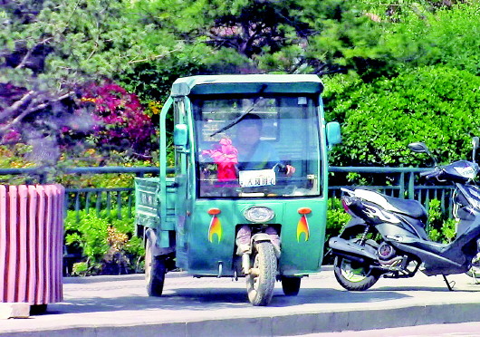 下午2点,老李发现明湖路边有一辆蓝色电动三轮。这是车主老周一年前花8000元买的,用来帮附近一单位运送垃圾,刚好临时停放路边。
