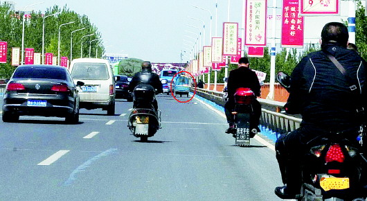 16日中午,济南黄河大桥,便衣民警有的骑摩托有的开车,悄悄尾随骑电动三轮回济阳的老李。