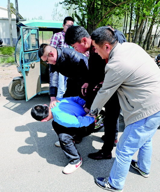 16日中午12点半,便衣民警将三轮车别停后,对老李实施抓捕。