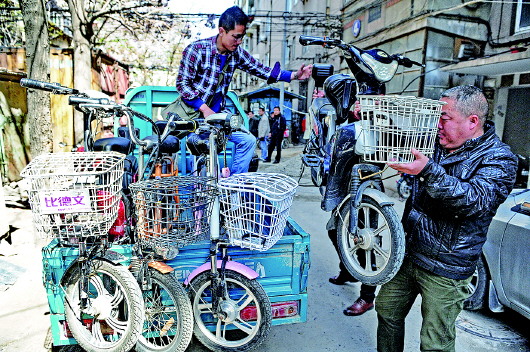 “发财了,开上电的啦”?4月16日一早,开着蓝色电动三轮上班的老李让工友羡慕。听工友这样问,他摆摆手,“别人的”。