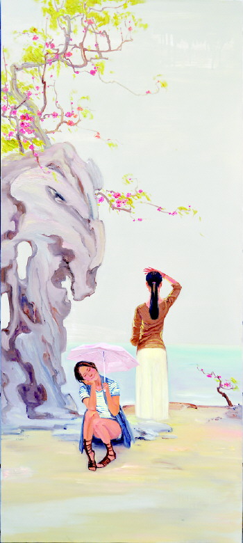 来自济南军区的韩坤平,毕业于解放军艺术学院。他以一位军旅画家严谨的创作态度,不断的拓宽其创作视野及更新艺术理念。他在选题上,尤以意象人物山水取胜,作品区别于西方传统现当代油画的风貌,具有独特的民族风格。韩坤平独特艺术风格的形成,源自于他对中国传统文化的深读和领悟以及对西方现代艺术的借鉴。多年的探索研究使他在油画创作的路子上越走越宽,近两年的创作实践中,他将现代人物与古代山水相结合,将中国山水画的意境移入油画创作中,赋予了作品一种特有的东方神韵。