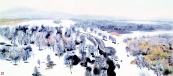 记得2003年11月初的某天早上,我像往常一样拉开窗帘,窗外白茫茫的一片,好大的雪呀!我赶紧背上相机,开上车,直奔京郊山区,当时天已放晴,路上的雪也开始融化,被车轧过溅起的泥水,使我放慢车速,有时间欣赏窗外的雪景。过了三家店,眼前的景色把我惊呆了,这地方太熟悉了,我从这里长大,在这里摸鱼、戏水,这里是永定河的一个支流,水面不宽、不深,河两岸都是芦苇,长着成排的杨柳,有一个堤坝把河水分开,坝的一侧有一个水渠,把水引入一条水沟为下游农民灌溉所用,坝上没有闸门等任何东西,上游来的水满后顺着堤坝自然流下,这是我童年最好的玩处,我曾多次在这里写生。然而今天的画面让我彻底惊呆了,我第一次感受到她在大雪中的魅力。不知怎么了,我熟悉的地方被大雪覆盖后变成另外一种感觉,有些像童话世界,又仿佛进入梦幻中,但她又是那么清晰。河边还没有来的急落叶的柳树,被大雪压弯了腰,有的枝杈竟然被压折,低着头垂在地上在秋风中微动;未封冻的深蓝色水面上有几只野鸭团缩在一起,好像也被这突如其来的大雪惊呆了,不知如何是好。堤坝上有几头黄牛和几只山羊在静静地吃草,其中一头黄牛在啃食被压折的树枝,有一个放牧的老人守候在那里——我赶紧举起相机不停地拍照,恐怕会遗漏了那一点,我要把他们记录下来,记录在脑海里,把它们真实的表现出来。