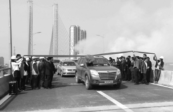第一辆车通过立交桥。