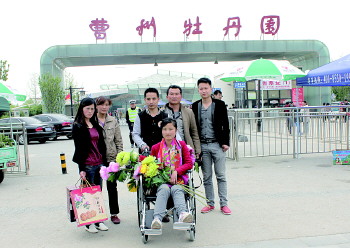 17日9时许,胡卫东开车来到鄄城县红船镇黄庄村黄莎莎家,黄修良也早早地赶来,他们小心翼翼地将坐在轮椅上的黄莎莎推出家门,并把她搀扶上车,一行人一路欢歌笑语驶向曹州牡丹园。