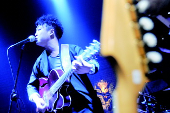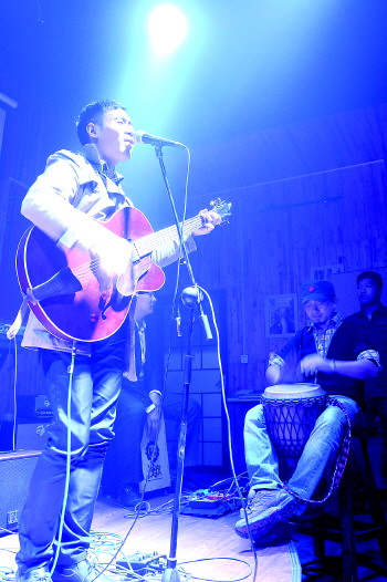 微弱的烛光,霓虹的灯光,刘云和他的“草鞋乐队”轻轻吟唱,一曲《花房姑娘》让在座的人们齐声叫好。“之所以叫草鞋乐队是因为走的路多了,喜欢上了徒步的感觉,2001年大学毕业后,我就做了一个决定:放弃工作,带上吉它,还有80多公斤重的行李,踏上旅途,完成我的摇滚梦。7年的时间,我以歌谋生,睡过马路,当过小工。只因为热爱摇滚,我从未放弃。”17日,刘云组织的多个原创摇滚乐队一同唱响“地平线”。