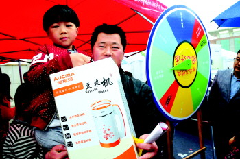 本报不少小记者也来到现场,带来舞蹈、乐器、歌曲等才艺节目。虽然天公不作美,从10点多就下起了小雨,但是家长还是带着宝贝坚持到颁奖典礼最后。在大转盘抽奖环节,参赛阳光宝贝排起队来,转动转盘,还拿走了不少豆浆机、面粉、饮料等奖品。
