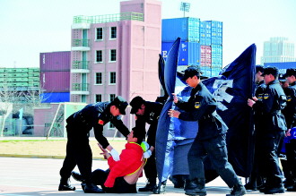 4月17日,在海警威海训练基地,市公安局经区分局举行警辅队员集训班汇报演练。