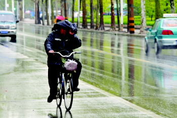 降雨同时伴随着降温,不少市民重新换上冬装。