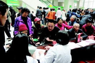 18日上午,齐鲁名医下基层大型公益巡诊活动在枣庄市中医院拉开帷幕,来自省城的二十多名医疗专家为枣庄市民进行了免费义诊。图为市民向专家咨询。 本报记者 袁鹏 摄影报道