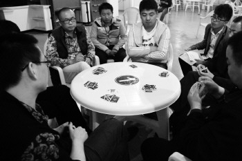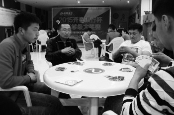 本报聊城4月19日讯(记者 李怀磊) 19日,晋级2015齐鲁银行杯(聊城)够级大赛16强的96名够级高手,冒雨来到开发区振华购物中心,经过一天的激烈角逐,分出了胜负,决出了雌雄。高手过招,招招精彩,参赛选手们打出了风格,赛出了水平,切磋了牌技,也结交了不少高手朋友。