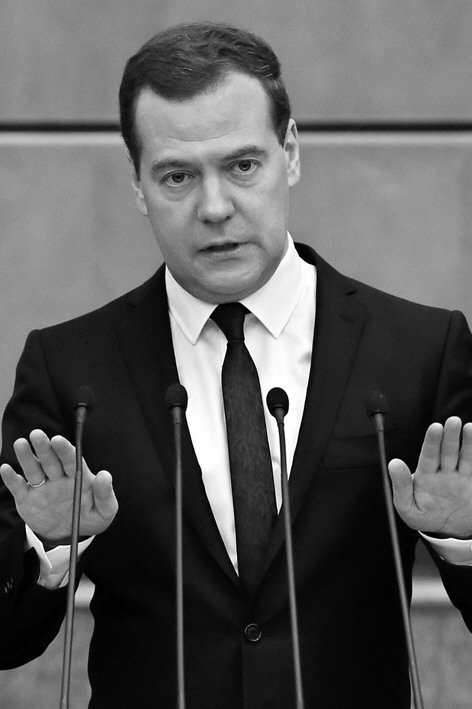 21日,俄罗斯总理梅德韦杰夫在俄国家杜马作2014年度政府工作报告。