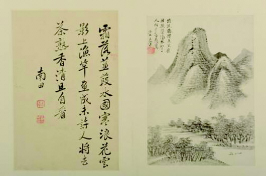 ◤画册局部,右边是王石谷的画,左边是恽寿平的对题。