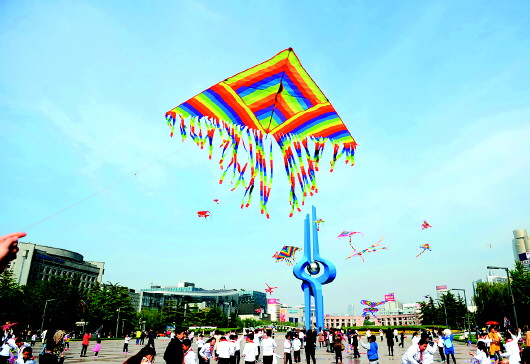 22日下午,泉城广场,来自趵突泉小学的全体师生一起欢度该校的风筝节。孩子们手牵自己制作的彩色风筝,在春风里自由奔跑、欢笑,尽享户外好空气。 本报记者 周青先 摄