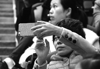 市民用手机录下讲堂的内容。(资料图)本报记者 李岩松 摄