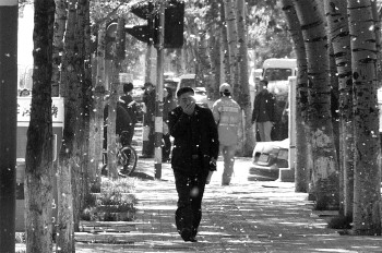 22日,在只楚路附近,团团杨絮飘在空中,仿佛下起了雪。据附近的居民介绍,每年这个时候杨絮都会泛滥成灾,这只是个开始。由于杨絮很轻,几乎无孔不入,行人无处躲藏,沿街店铺和住宅都不敢开门。