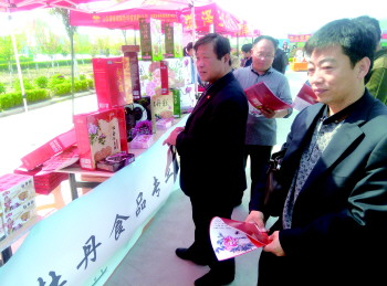 牡丹深加工企业向市民介绍牡丹产品。本报记者 袁文卿 摄