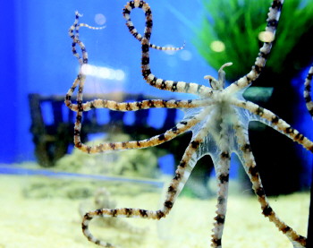 为迎接“五一”假期和旅游旺季,22日,青岛海底世界推出国内首家“海底隐形生物”主题展。拟态章鱼、石头蟹等9种海洋“隐形高手”齐亮相。它们藏在水族缸的各个角落里,与环境融为一体,难以分辨,着实考验观看者的眼力。