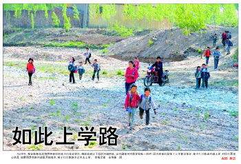 下午4点,桥北面的龙廷镇第八联合小学放学了,学生们背着书包高高兴兴在桥上走着,有的还在桥上嬉戏。“桥没修以前要是下雨,孩子根本不能来上学,水流小点还能背着孩子过河,水流大点连想也别想了。现在有这个桥了,真是方便了不少,家长在桥南面等着就行了。”一学生家长说。