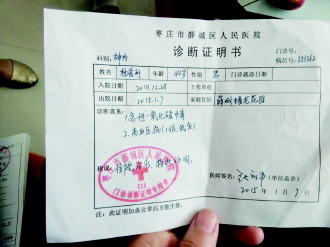 杨先生向记者展示诊断证明。 本报记者 韩微 摄