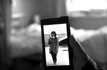 甜甜父亲手机上存着女儿以前的照片。 本报记者 邹俊美 摄