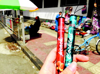 这种果味的“电子烟”在学生圈中盛行。本报记者 康宇 摄