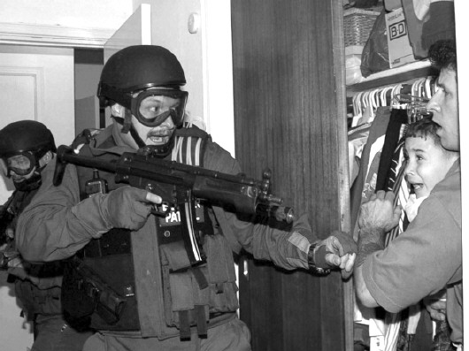 2000年4月22日黎明时分,美国边防警卫队八名全副武装的特工在超过130名移民局人员的配合下持枪突袭了埃连暂居的叔父家,把躲在衣柜中、饱受惊吓而大哭的埃连强行抱走。