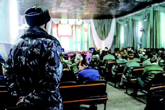 3月27日,俄罗斯新西伯利亚第九监狱服刑人员在集中活动。