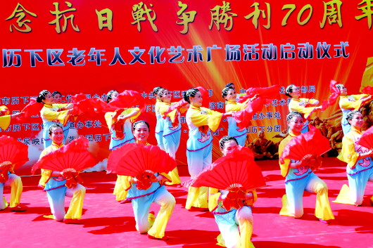 4月23日,由历下区老龄委、历下区甸柳新村街道办事处等多家单位联合主办的“纪念抗日战争胜利70周年历下区老年人文化艺术广场活动启动仪式”在甸柳小区文化广场举行。