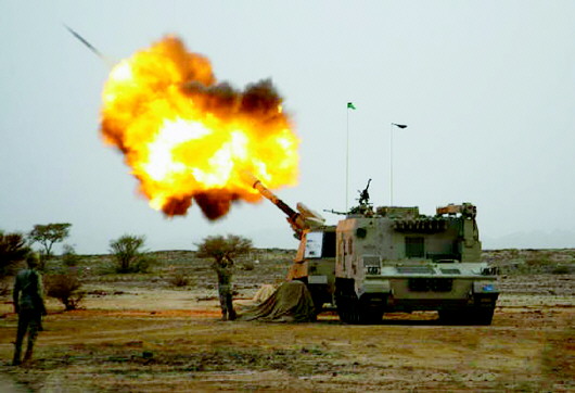 4月15日,在沙特与也门边境,沙特军队用中国产PLZ-45自行火炮炮轰胡塞武装据点。