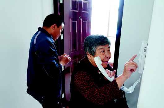 家住官扎营片区的王大娘专程赶过来看看儿子的新居,很是满意。 本报记者 陈文进 摄