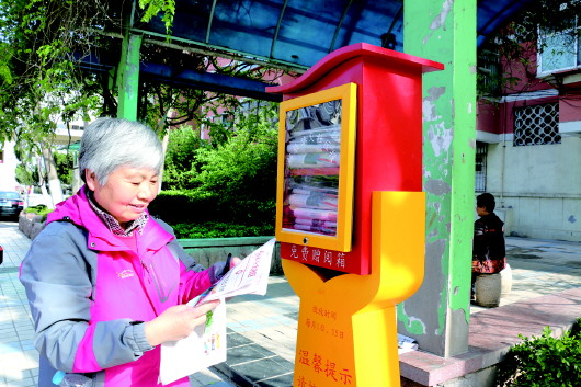 社区居民到报箱取阅报纸。 本报记者 许建立 摄