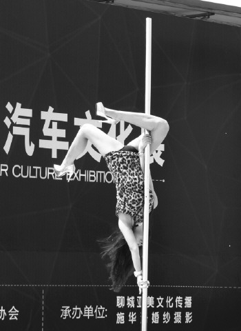26日的车展现场,两位专业舞者上演了激情钢管舞,热辣的演出吸引了众人眼球,为本届车展增色不少。