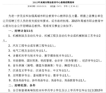 2015年禹城市职业教育中心教师招聘简章截图。