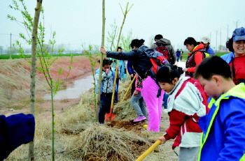 日前,青岛福州路小学一年级二班的全体师生赴莱西,亲手种下一棵棵小树苗,为美丽家园增添一抹绿色。