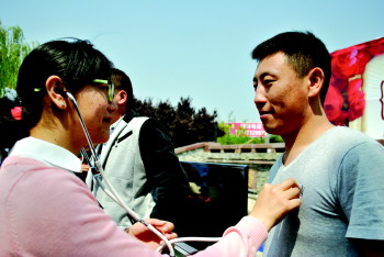 本报泰安4月26日讯(记者 赵兴超) 本次相亲会上,最受单身男女欢迎的游戏莫过于听心跳。女孩用听诊器给男士听心跳,中意的男士心跳会突然加快,缘分也就水到渠成。一位男士相中给他听心跳的女士,面对女士大胆的表露,竟然羞涩地拉女孩下台私聊。