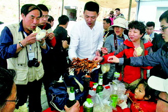 ◥大家拍的开心,午饭吃的也很开心! 记者 陈乃彰 摄
