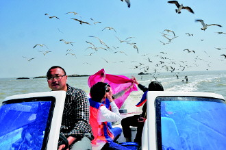 山、海、鸟相映成景,让大家不停地抓拍下每一个精彩的画面,本报摄影记者也从光线的运用、拍摄角度调整以及如何构图等方面对“拍课堂”学员进行倾力指导。