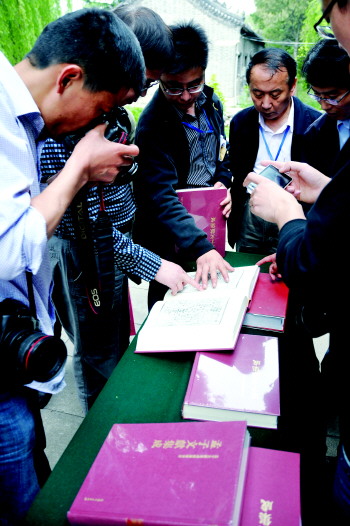 首发仪式现场,大家争相浏览《孟子文献集成》。本报记者 李岩松 摄