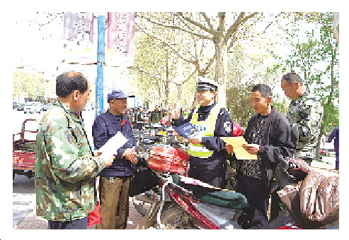 近日,莱芜市交警支队城区大队民警深入辖区劳务市场,向农民“钟点工”宣讲安全出行常识。