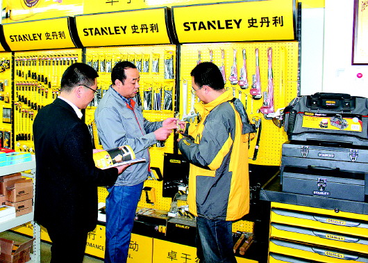 本报4月30日讯 一走进章丘市东银五金机电城德银五金章丘店内,就看到史丹利货架前几个人在讨论着什么。走近一听,原来是史丹利工具公司的工作人员到德银五金店做市场回访。