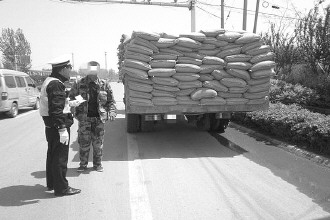 4月27日,一拉货的车辆在行驶至市中区外环路时被警方查获。这一运输建材车辆装载的货物高出货仓护栏一倍多。据悉,在当天行动中市中交警查处“渣土车”各类违法行为20余起,其中涉牌涉证2起,超载5起。 本报通讯员 张伟 鹿稳 本报记者 袁鹏 摄影报道