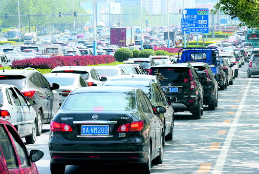 上午9时30分,记者来到领秀城西门的103省道路口,此时交通拥堵情况已经比较严重,路口以北和以西都排起了长长的车队。国防教育基地路口北向南方向的车道上几乎是车连着车,绵延数公里,而南向北方向的车道上却空空荡荡,偶有几辆车通过。