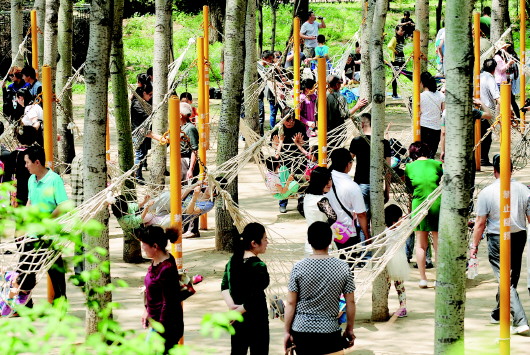 1日,不少市民在家门口休闲度假。东郊植物园,游客尽享初夏的绿色和清新空气。 本报记者 周青先 摄
