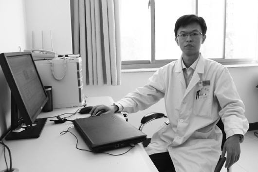 4日下午6点钟,记者在滨州市人民医院呼吸内一科看到,一位医生正在接待一位刚被送进病房的患者,他耐心、认真地与患者交谈,安排她在病房中住下。紧接着,他又来到一间病房,为一位他的“老病号”做了听诊检查。忙完了这些,他才抽空与记者聊了几句,而在这期间,他的手机来电一直没断过……这位和蔼可亲的医生就是滨州市十大杰出青年、呼吸内一科负责人王新安。