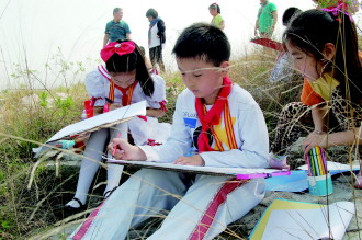 5月3日,文化路小学四年级三班组织部分学生和家长,来到市中区永安乡明兴核桃产业园。学生们登上山顶,将看到的美景用心画下来,并将其作为母亲节的一份特殊礼物送给妈妈。 本报通讯员 季龙 孙晋伟 本报记者 袁鹏 摄影报道