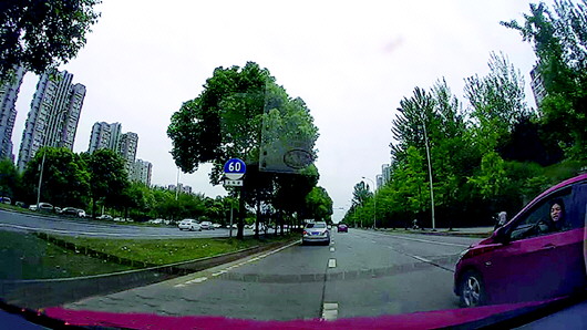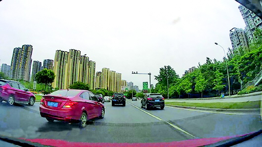 视频中,张某驾驶车辆从成渝立交往航天立交行驶。其间,可以听到车内有小孩及女子说话的声音。